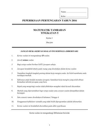 Kertas Matematik Tambahan Spm 2016